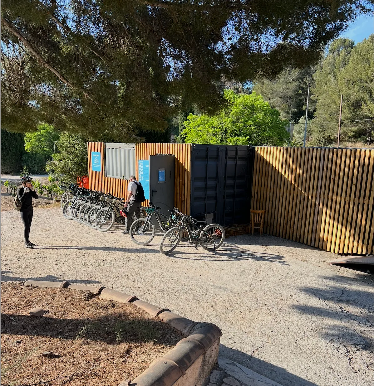 Notre emplacement de location est situé au sein du domaine Bodin à Cassis. Nous sommes installés dans des conteneurs à gauche une fois l'entrée du domaine franchie. Pour information, il y a un parking gratuit sur place. Assurez-vous de vérifier nos heures d'ouverture (9h00-18h00, 7/7j)
