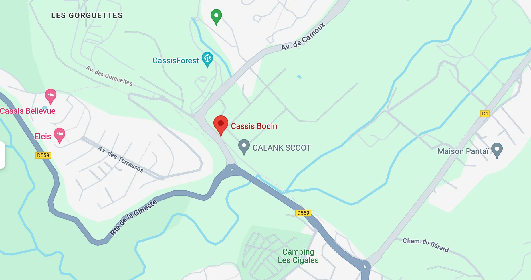 Nous nous situons à l'intérieur du Domaine Cassis Bodin, Av. de Carnoux, 13260 Cassis.